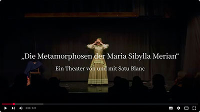In ihrem neuen Stück schlüpft Satu Blanc in die Rolle der Maria Sibylla Merian (1647–1717). Sie war Naturforscherin und Künstlerin, Geschäftsfrau, Autorin und Herausgeberin diverser Blumen- und Raupenbücher.