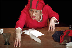 Ohne Kostümwechsel spielt Satu Blanc sechs verschiedene Figuren.