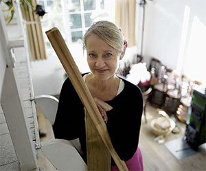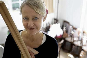 Unter der Galerie prangt ein Schubladenkorpus. Satu Blanc, Schauspielerin, Historikerin, Leiterin und Seele ihres Theaters, weist bei unserem Besuch auf die Schubladen, aus denen sie für ihre Solostücke über historische Frauengestalten Requisiten ziehen wird, als »Sophia, Hüterin der Geschichten«; Sophia wird im neuen Stück »Christina von Schweden, Königin des Barocks«, das ab November gespielt wird, durch die Handlung führen. Die Zeitschublade ist reales Behältnis für Handschuhe, Fächer, Taschen und andere Dinge, die eine vergangene Zeit bedeuten, sowie Metapher. Satu Blanc will in eine andere Zeit entführen – sie für uns Heutige zum Sprechen bringen.